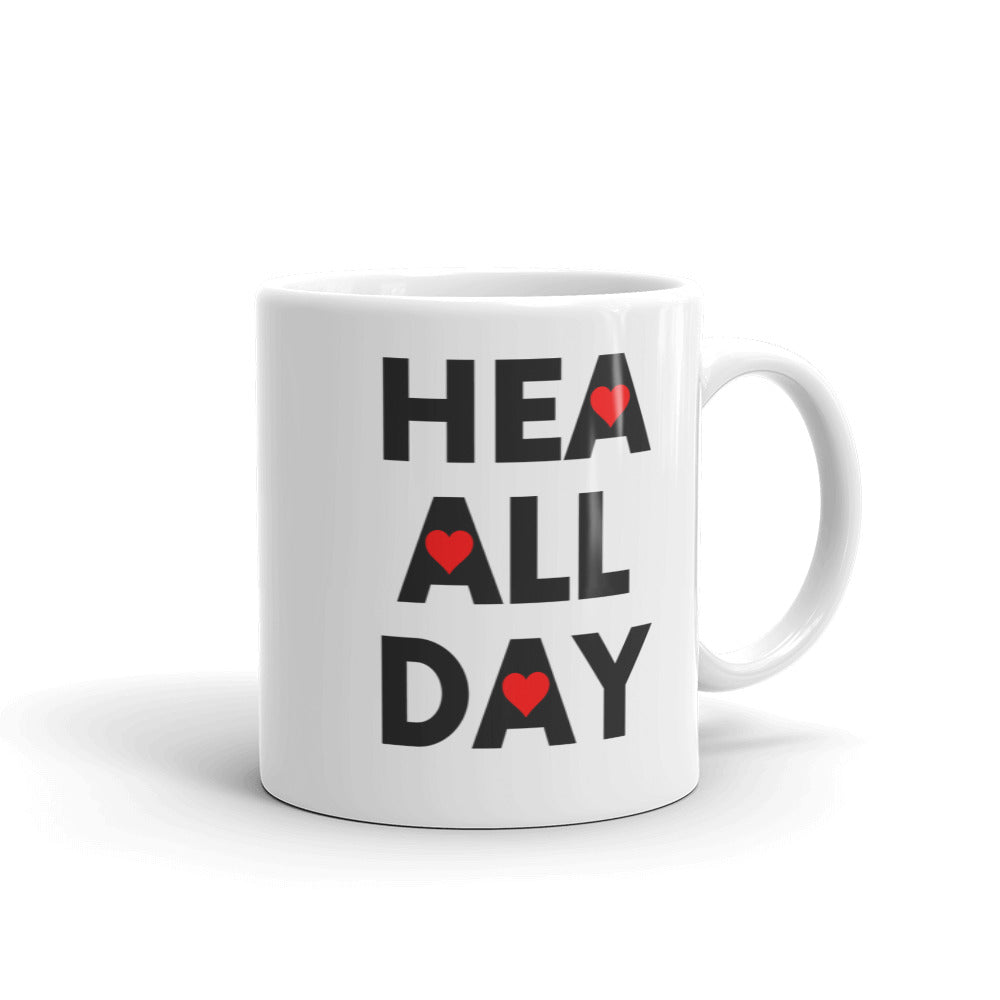 Celebrate your love of romance with this HEA All Day mug! Whether you're drinking your morning coffee, evening tea, or something in between – this mug's for you! It's sturdy and glossy with a vivid print that'll withstand the microwave and dishwasher.